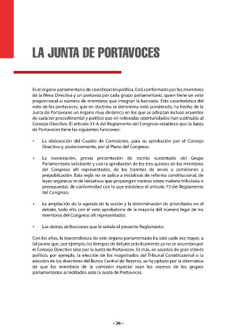 de la Mesa Directiva y un portavoz por cada grupo parlamentario. quien tiene un voto