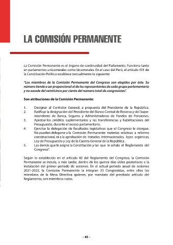 2021-2022, la Comisión Permanente la integran 33 Congresistas, entre ellos los