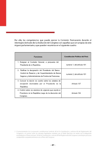 Permanente tiene competencias propias, competencias compartidas con el Pleno y Presidente de la República luego de la disolución del Artículo 134