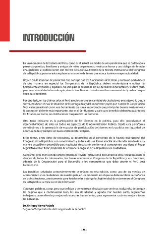 Introducción........................................................................................................................................................................9 En un momento de la historia del Perú, como es el actual, en medio de una pandemia que se ha llevado a