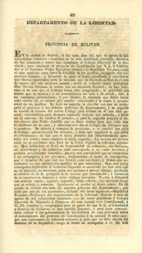Pez:l1ana-Prefectura del departamento de la Libertad, Bolivar á siete de