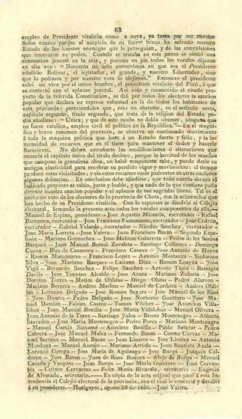 lllliforme voto de los electores de la provincia de Chota, con 1a achunadon. qúe: