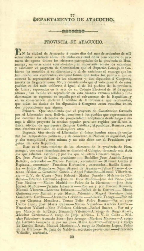 EN la ciudad de Ayacucbo á cuatro días del mes de setiembra de mil