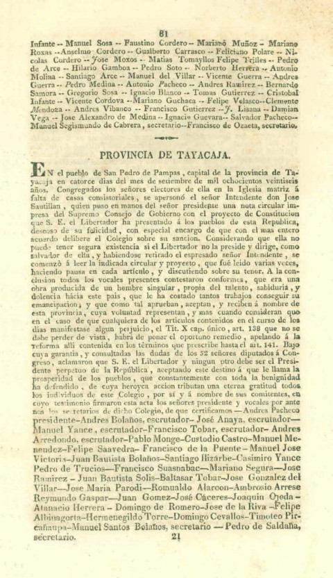 EN el pueblo de San Pedro de Pampas , capital de la provincia de Ta.: