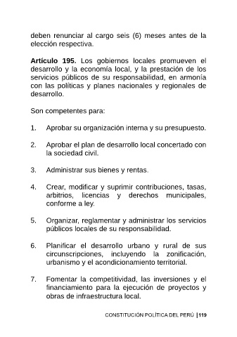 Page 119 - Constitución Política del Perú promulgada el 29 de diciembre de 1993