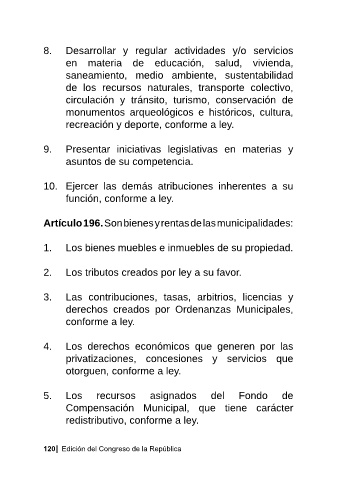 Artículo 196. Son bienes y rentas de las municipalidades: