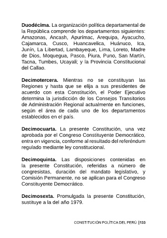 Page 133 - Constitución Política del Perú promulgada el 29 de diciembre de 1993