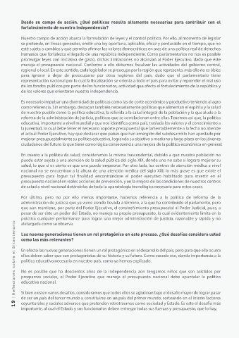 de nuestro pueblo como la política educativa, la referida a la salud integral de la población y la que alude a la