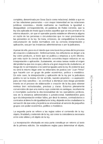 En este caso, la interpretación y aplicación de la ley por la judicatura 23