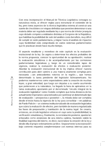 Manual de Técnica Legislativa tarea evaluadora apostando por el denominado “circuito integral de la