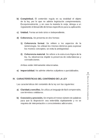 a) Claridad y sencillez. Se utiliza un lenguaje de fácil comprensión, Manual de Técnica Legislativa