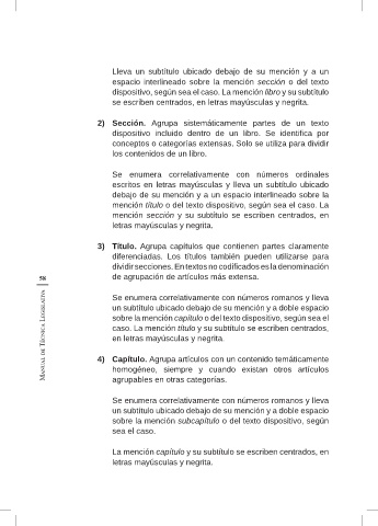 Manual de Técnica Legislativa 4) Capítulo. Agrupa artículos con un contenido temáticamente