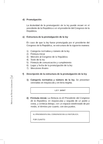 f) Descripción de la estructura de la promulgación de la ley