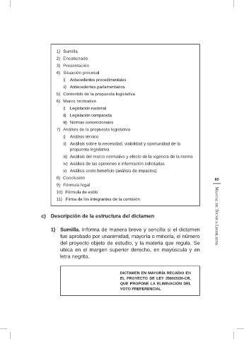 c) Descripción de la estructura del dictamen Manual de Técnica Legislativa