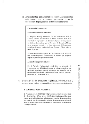 5) Contenido de la propuesta legislativa. Informa, breve y Manual de Técnica Legislativa