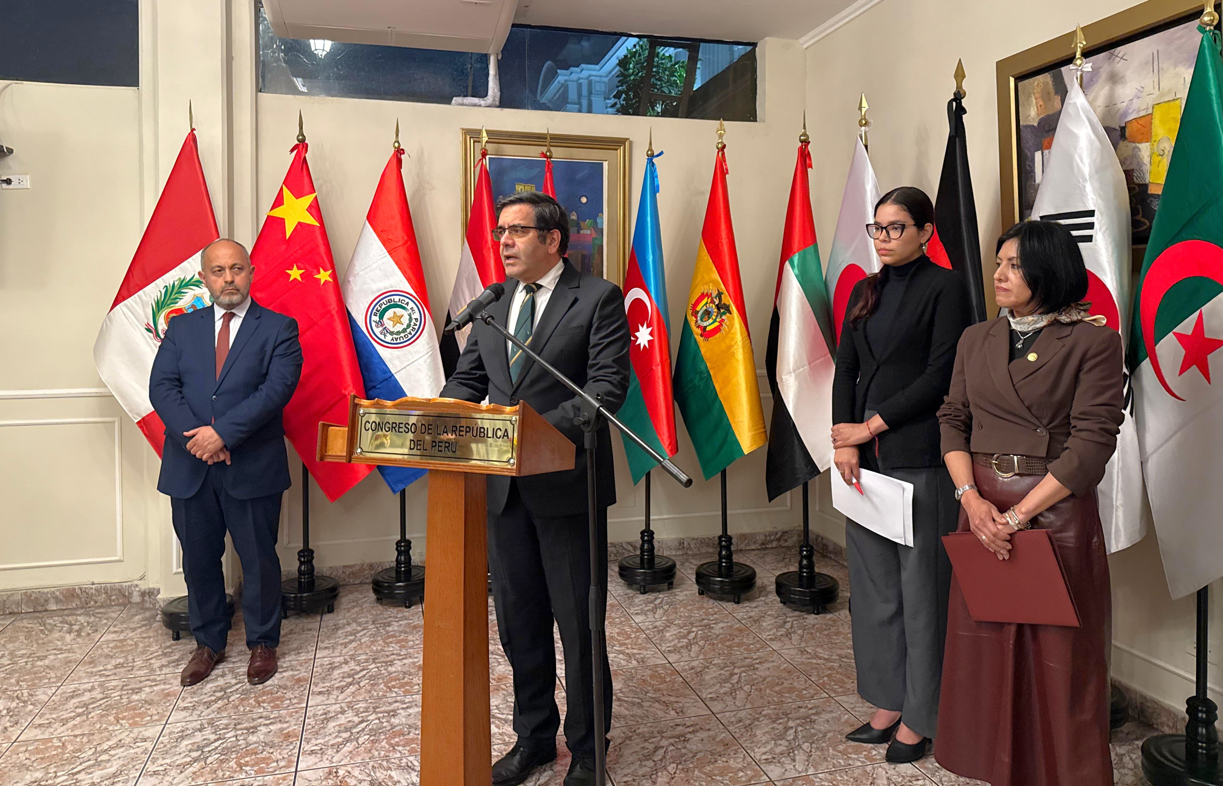 El acto realizado en la sala Raúl Porras Barrenechea, estuvo encabezado por la titular del Congreso, Maricarmen Alva Prieto, y el presidente ejecutivo de la cámara, Carlos Alberto Zapater Cateriano. También participó la jefa de la Oficina de Cooperación Internacional del Parlamento, María Teresa Cabrera Vega.