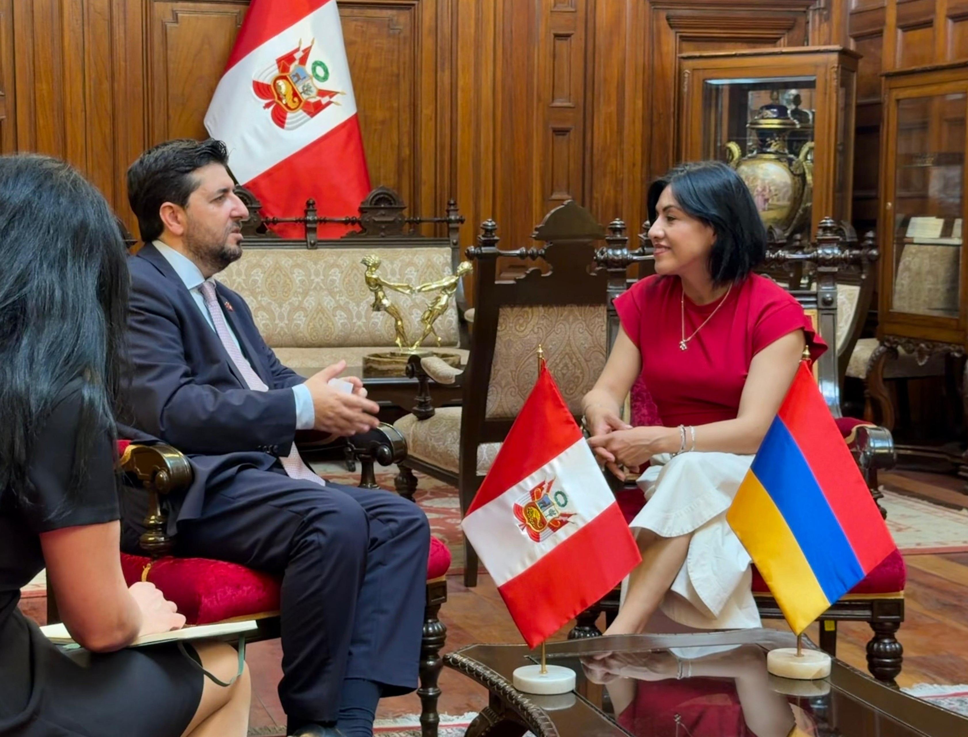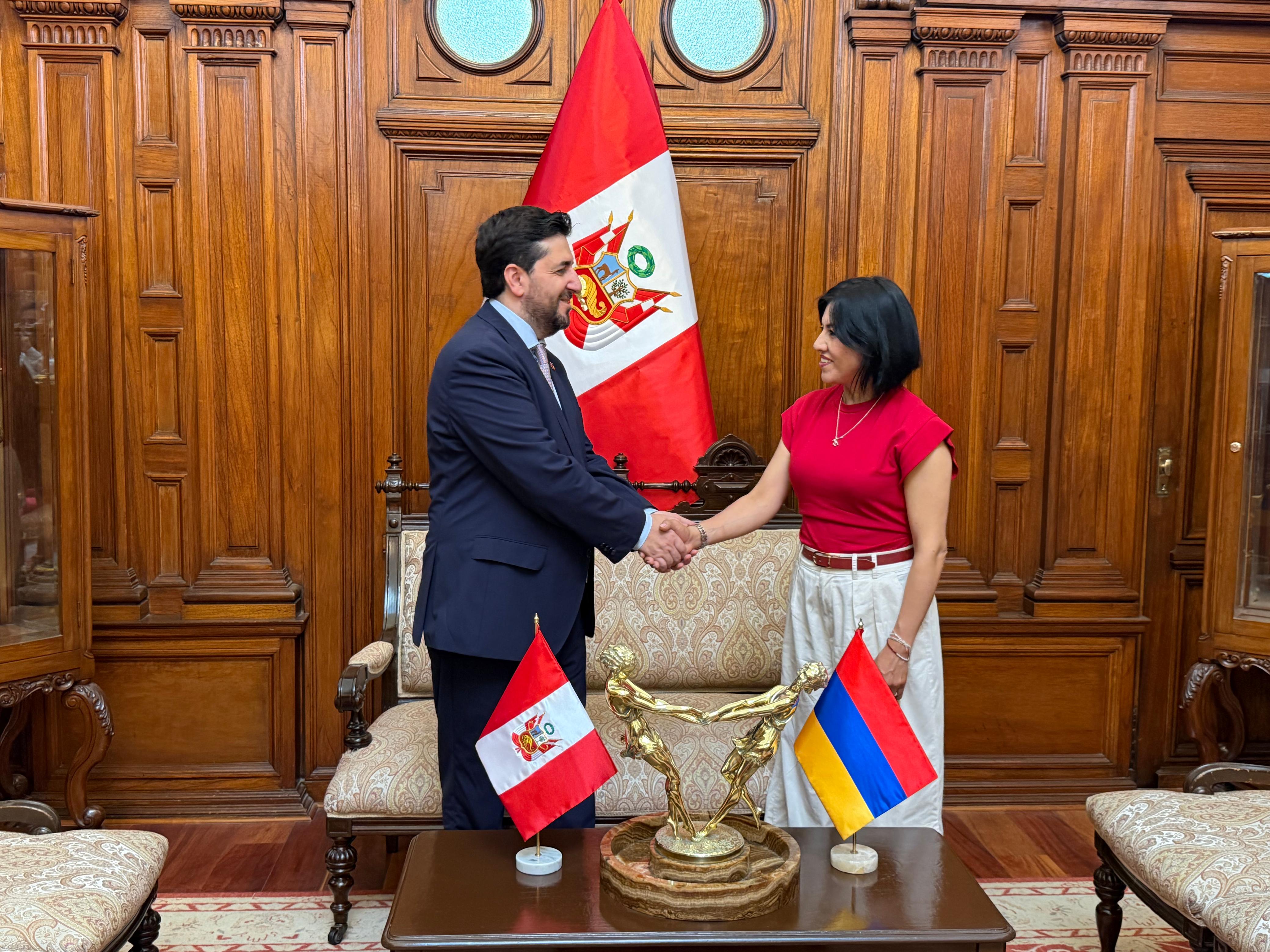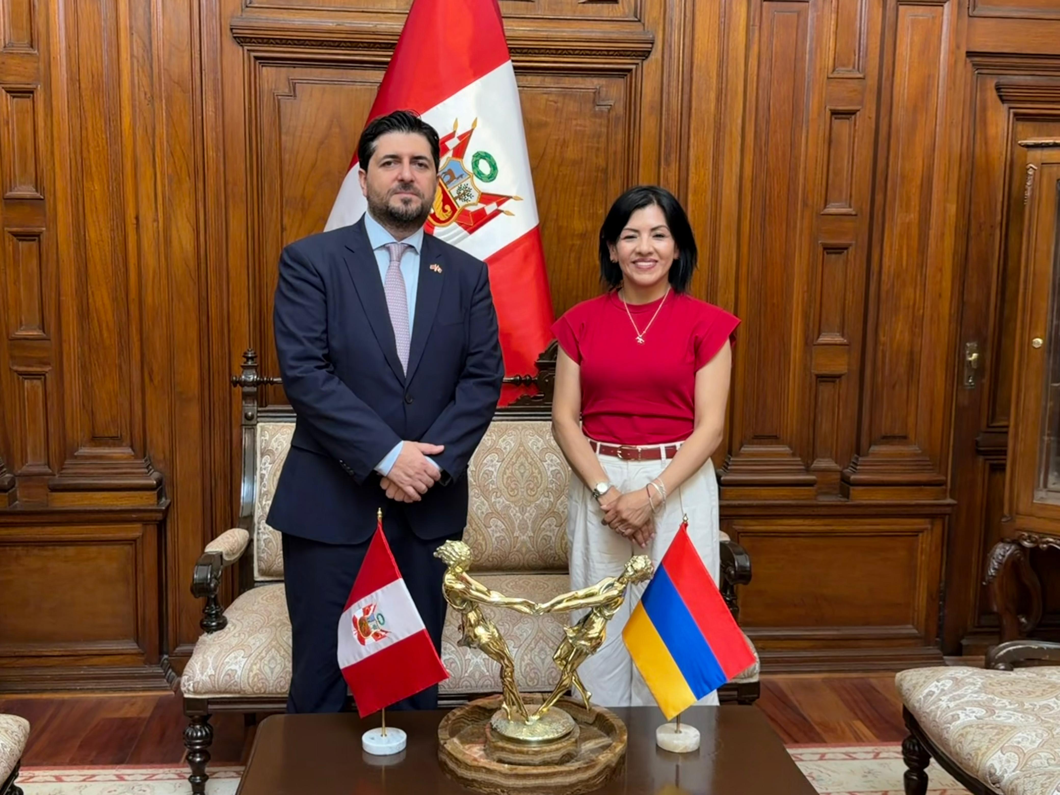 La jefa de la Oficina de Cooperación Internacional del Congreso de la República, Ing. Carina Ruth Palacios Quincho, sostuvo una reunión con el Embajador de la República de Armenia, concurrente ante el Perú desde Buenos Aires, Hovhannes Virabyan. El encuentro permitió dialogar sobre temas de interés común y reafirmar la voluntad de ambas partes de mantener un canal de comunicación abierto que contribuya al fortalecimiento de las relaciones bilaterales entre el Perú y la República de Armenia. La Oficina de Cooperación Internacional continúa promoviendo espacios de diálogo y cooperación internacional que coadyuven al fortalecimiento institucional del Congreso de la República. |