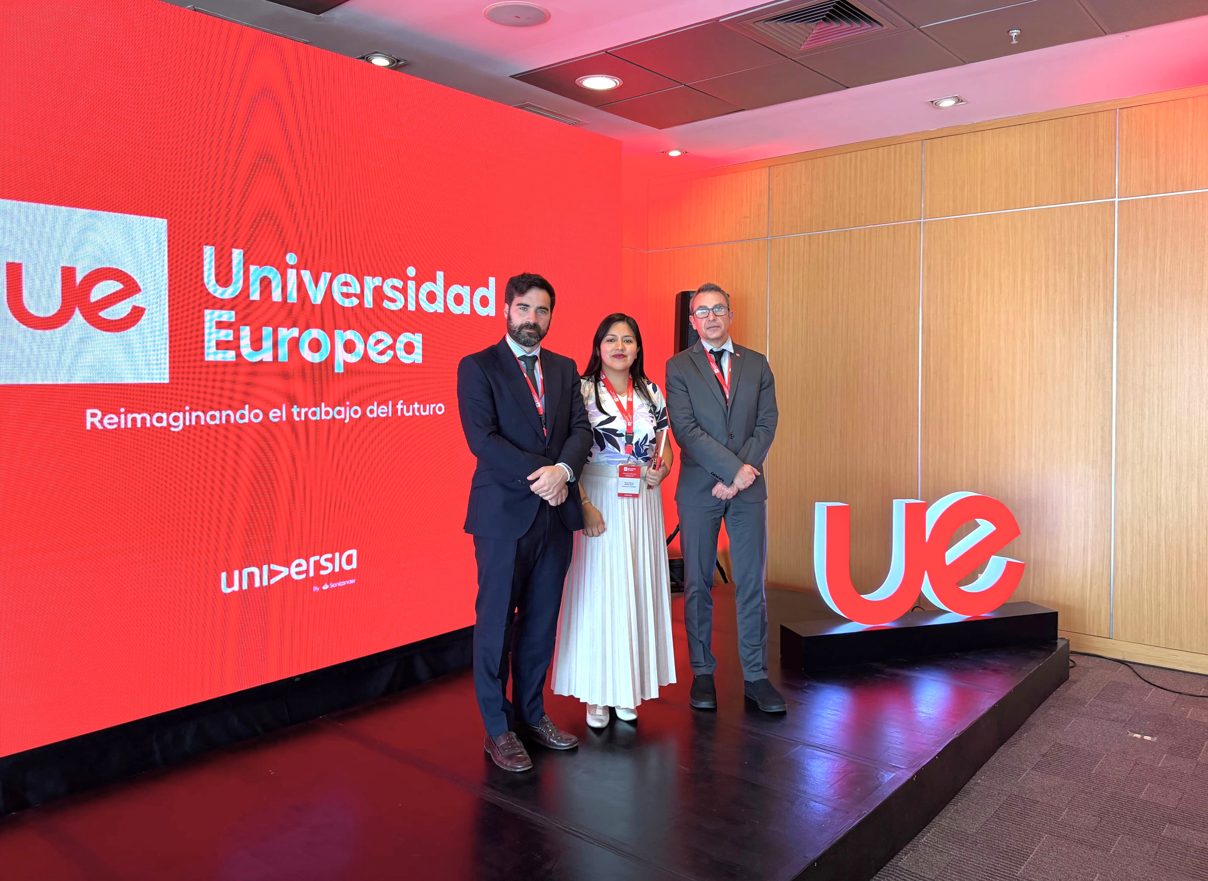 Jefa de la OCI, Lic. Yoana Amable, junto al Director Internacional de la UE, Ricardo Ricardo Arderius Villanueva y el Vicerrector de Relaciones Institucionales de la UE, Sergio Calvo Fernandez.
