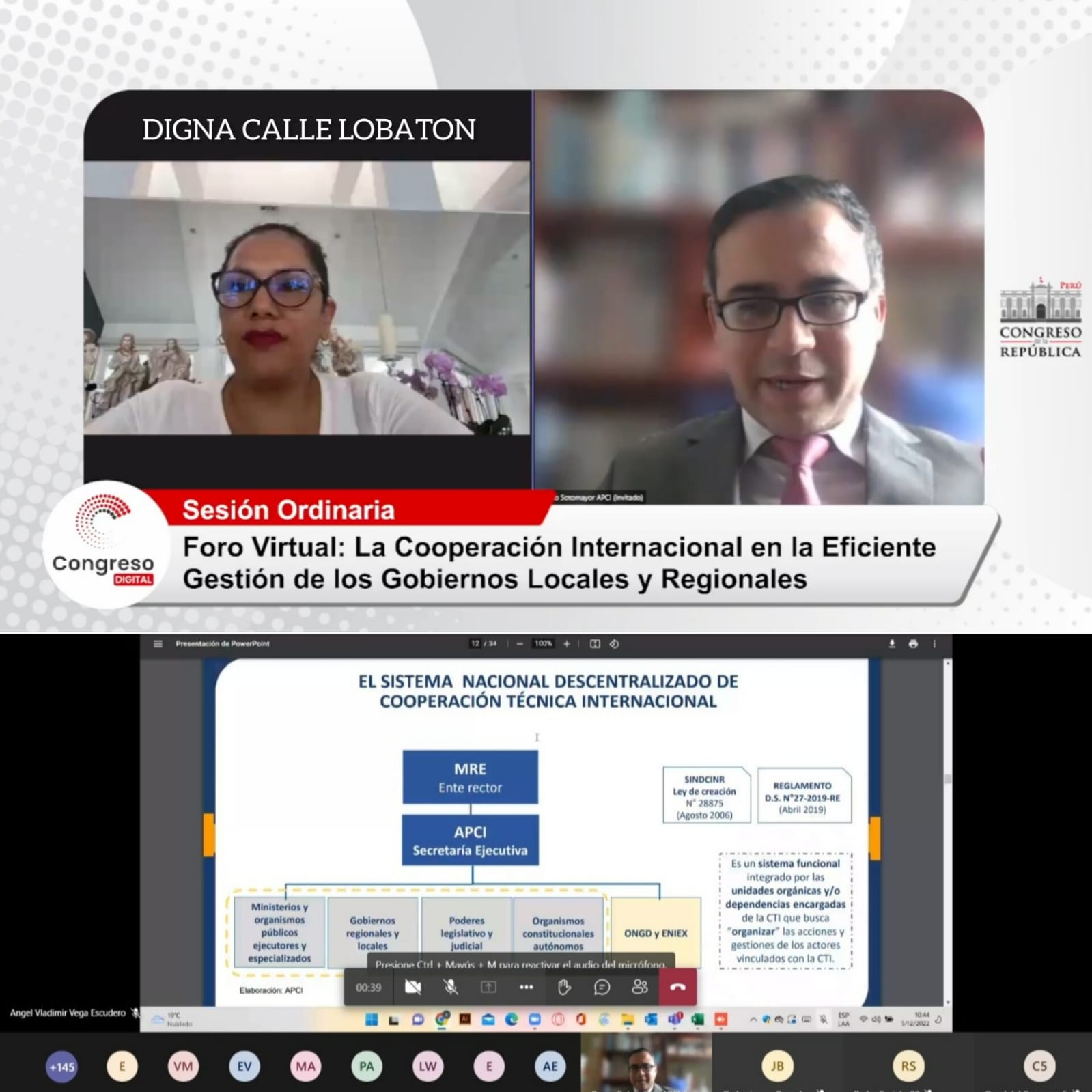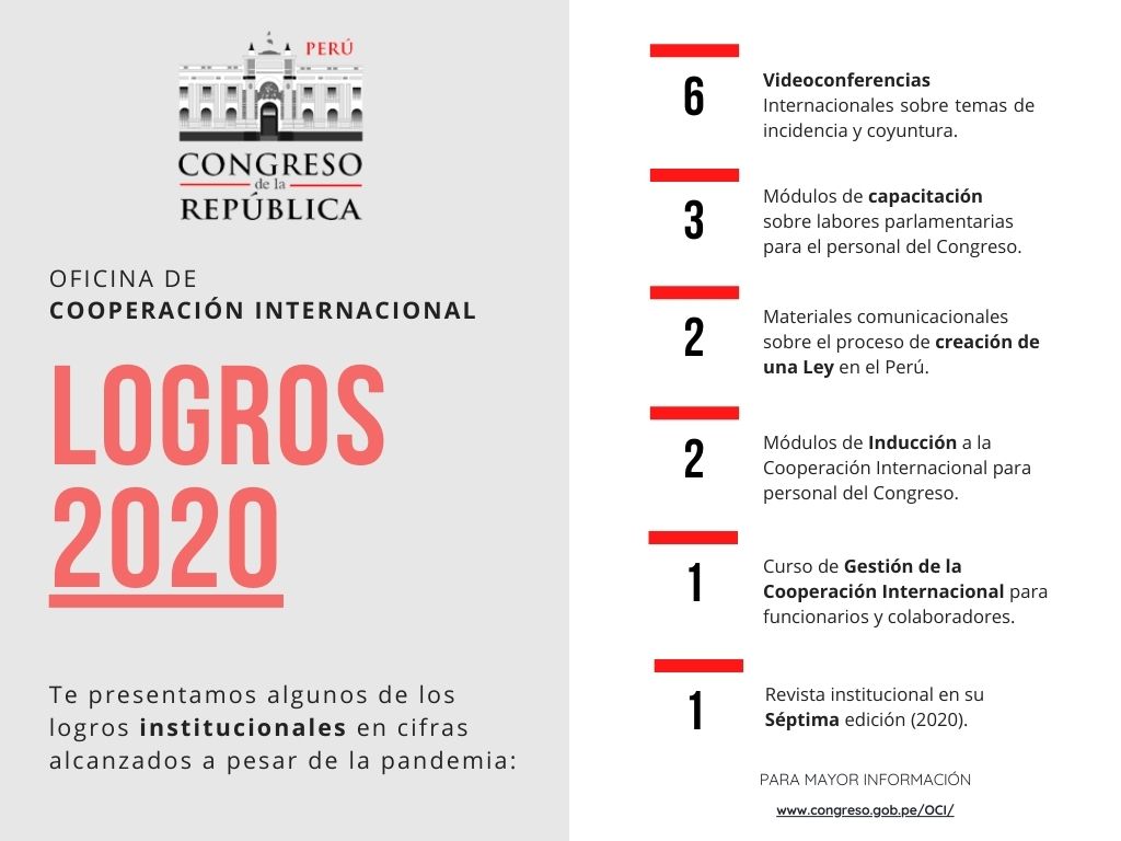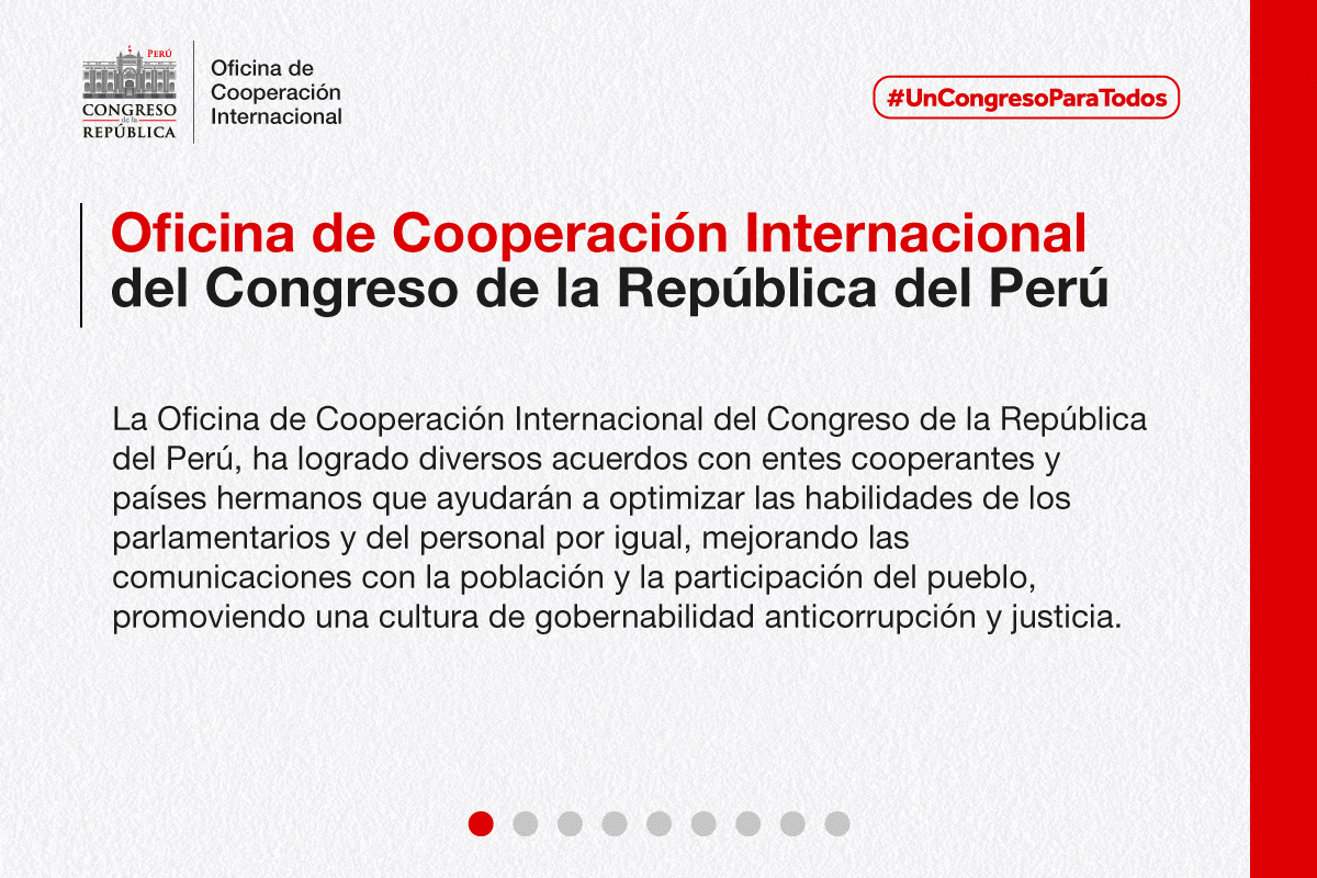 La Segunda Vicepresidencia del Congreso de la República y la Oficina de Cooperación Internacional, el Instituto Peruano Europeo y la Agencia Peruana de Cooperación Internacional, organizaron el foro virtual, dirigido a las nuevas autoridades electas en los Gobiernos Locales y Gobiernos Regionales" que busca capacitarlos para aprovechar las oportunidades de ejecutar sus proyectos con la Cooperación Internacional en complemento a los esfuerzos nacionales. Asimismo, cabe señalar que la Cooperación Internacional es importante en el proceso de desarrollo y descentralización. (5 de diciembre de 2022)