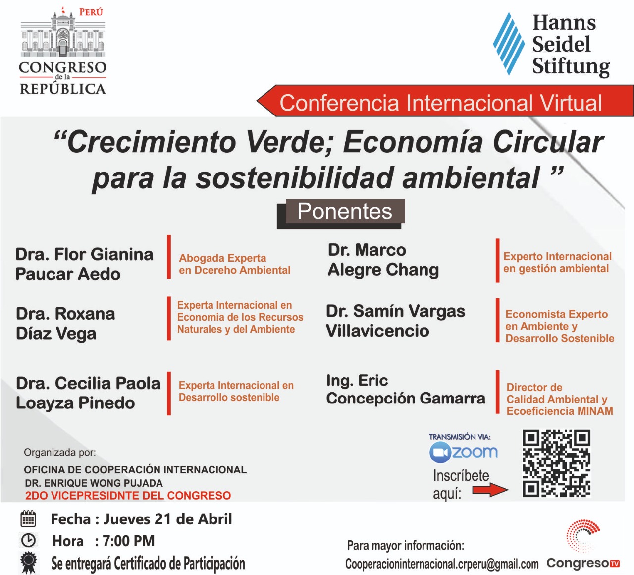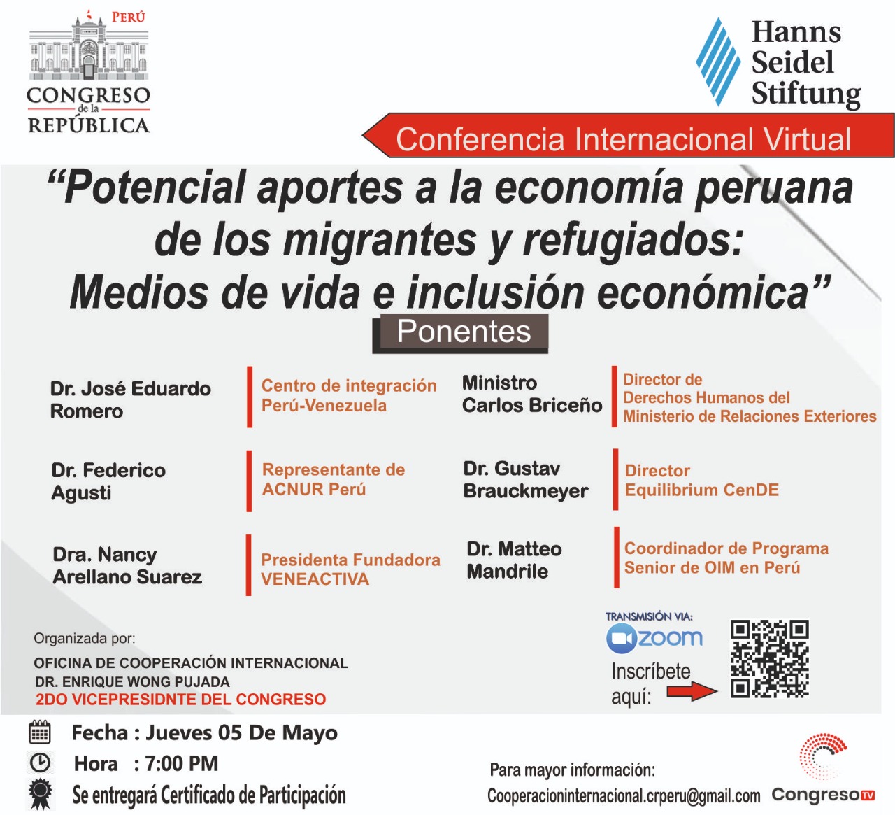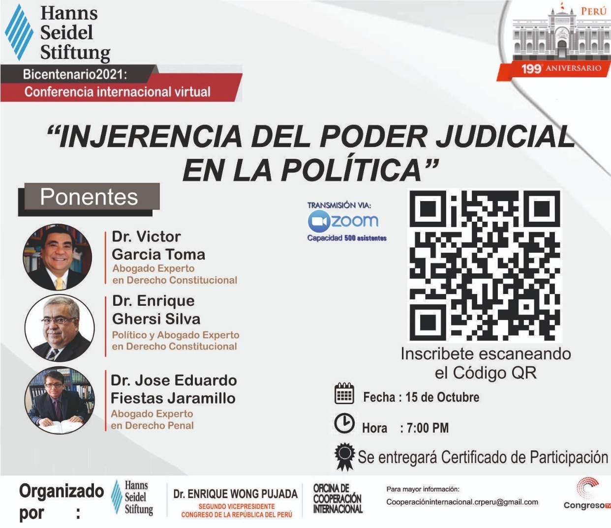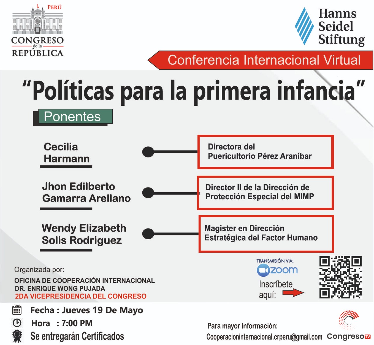 Este evento es el resultado del trabajo conjunto entre la Segunda Vicepresidencia del Congreso de la Republica, la Oficina de Cooperación Internacional y la Organización Alemana Hanns Seidel Stiftung.