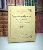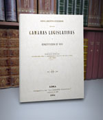 CI/328.36/P45R/1872 Perú. Congreso Reglamento Interior: Cámaras Legislativas. -- Lima: Imp. del Estado, 1872. 285 p.