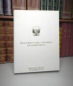 328.8505/P45/1995 Perú. Congreso. Reglamento del Congreso de la República (edición oficial) / Congreso de la República. -- Lima: Congreso del Perú, 1995. 108 p. Edición Oficial
