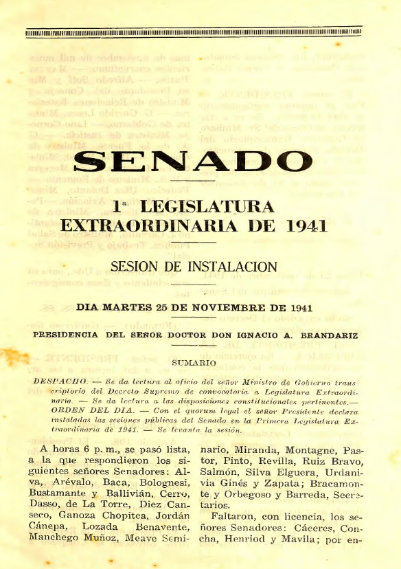 Legislatura Ordinaria de 1941. 1er. Volumen Legislatura Ordinaria de 1941. 2do. Volumen Legislatura Extraordinaria de 1941. 1er. Volumen Legislatura Extraordinaria de 1941. 2do. Volumen 2a. Legislatura Extraordinaria de 1941