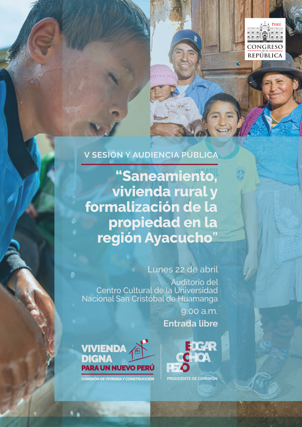 | 2019-05-14 | Audiencia Pública Descentralizada de la Comisión de Vivienda y Construcción en la Región Huancavelica La Audiencia Pública se llevará a cabo el viernes 24 de mayo, a partir de las 9.00 a.m. teniendo como sede el Auditorio de la Municipalidad Distrital de Rosario – Provincia de Acobamba, Departamento de Huancavelica. |