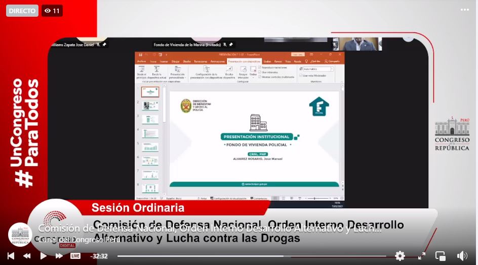 INVITADO: Coronel Policía Nacional José Manuel Alvarez, Director del Fondo de Vivienda de la Policía Nacional del Perú FECHA: Lunes, 07 de marzo 2022 - 11ma. Sesión Ordinaria |