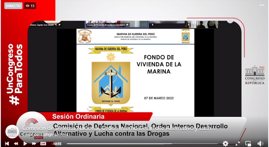 INVITADO: Capitán de Navío Andrés Everett Westres, Director del Fondo de Vivienda de la Marina de Guerra del Perú FECHA: Lunes, 07 de marzo 2022 - 11ma. Sesión Ordinaria |
