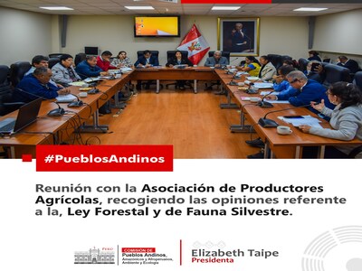 Desde la Comisión de Pueblos Andinos, Amazónicos y Afroperuanos, Ambiente y Ecología, que preside la congresista Elizabeth Taipe, hoy nos reunimos con la Asociación de productores agrícolas, recogiendo las opiniones referentes al proyecto de ley que modifica la Ley Forestal y de Fauna Silvestre.