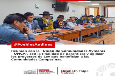 En el marco de la actividad parlamentaria, nos reunimos con la asociación de comuneros "Unión de Comunidades Aymara - UNCA", en dicha reunión se informó el proceso de avance de los proyectos de Ley de las comunidades campesinas para garantizar el derecho de las comunidades.