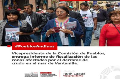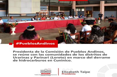 Presidente de la comisión de Pueblos Andinos, Elizabeth Taipe Coronado, Ministro de Ambiente, Wilbert Rozas y la viceministra de Ambiente, junto con el presidente del OEFA Perú, se reúne con las comunidades de los distritos de Urarinas y Parinari (Loreto) en el marco del derrame de hidrocarburos en la quebrada de Cuninico.