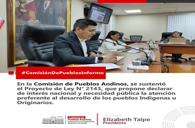 En la Comisión de Pueblos Andinos, se sustentó el Proyecto de Ley N° 2143, de autoría del Congresista Alex Flores Ramírez (Perú Libre), que propone declarar de interés nacional y necesidad pública la atención preferente al desarrollo de los pueblos Indígenas u Originarios.