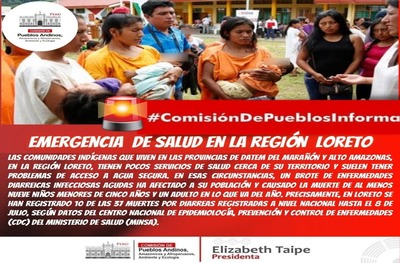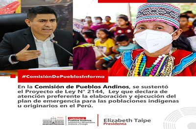 En la Comisión de Pueblos Andinos, Amazónicos y Afroperuanos, Ambiente y Ecología, se sustentó el Proyecto de Ley N° 2144/2021-CR, de autoría del Congresista Alex Flores Ramírez (Perú Libre), Ley que declara de atención preferente la elaboración y ejecución del plan de emergencia para las poblaciones indígenas u originarios en el Perú.