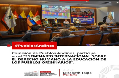 La Comisión de Pueblos Andinos, Amazónicos y Afroperuanos, presidida por la Congresista Elizabeth Taipe, participo en el "I SEMINARIO INTERNACIONAL SOBRE EL DERECHO HUMANO A LA EDUCACIÓN DE LOS PUEBLOS ORIGINARIOS DE LA SUBREGIÓN ANDINA", organizado por el Parlamentario Fernando Arce, desarrollado este lunes 5 de diciembre, tuvo a expositores como la parlamentaria andina de Ecuador, Mirian Liduvina Cisneros; así como expertos académicos de los países de Bolivia, Ecuador y Perú quienes abordaron esta problemática con profundo conocimiento.
