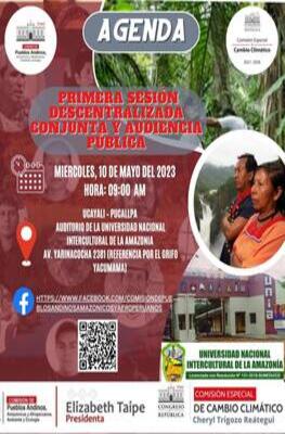 El miércoles 10 de mayo del presente se llevó a cabo la PRIMERA SESION DESCENTRALIZADA CONJUNTA Y AUDIENCIA PÙBLICA de la Comisión de Pueblos Andinos, Amazónicos y Afroperuanos, Ambiente y Ecología, y la comisión especial multipartidaria encargada del seguimiento, coordinación y formulación de propuestas en materia de mitigación de los efectos del cambio climático. Asimismo, tuvimos las siguientes actividades