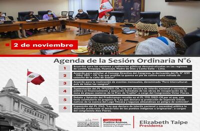 El viernes 05 de mayo del presente se llevó a cabo la Décima Sesión Extraordinaria de la Comisión de Pueblos Andinos, Amazónicos y Afroperuanos, Ambiente y Ecología, Asimismo, esta Comisión, aprobó por Mayoría los siguientes pre dictámenes.