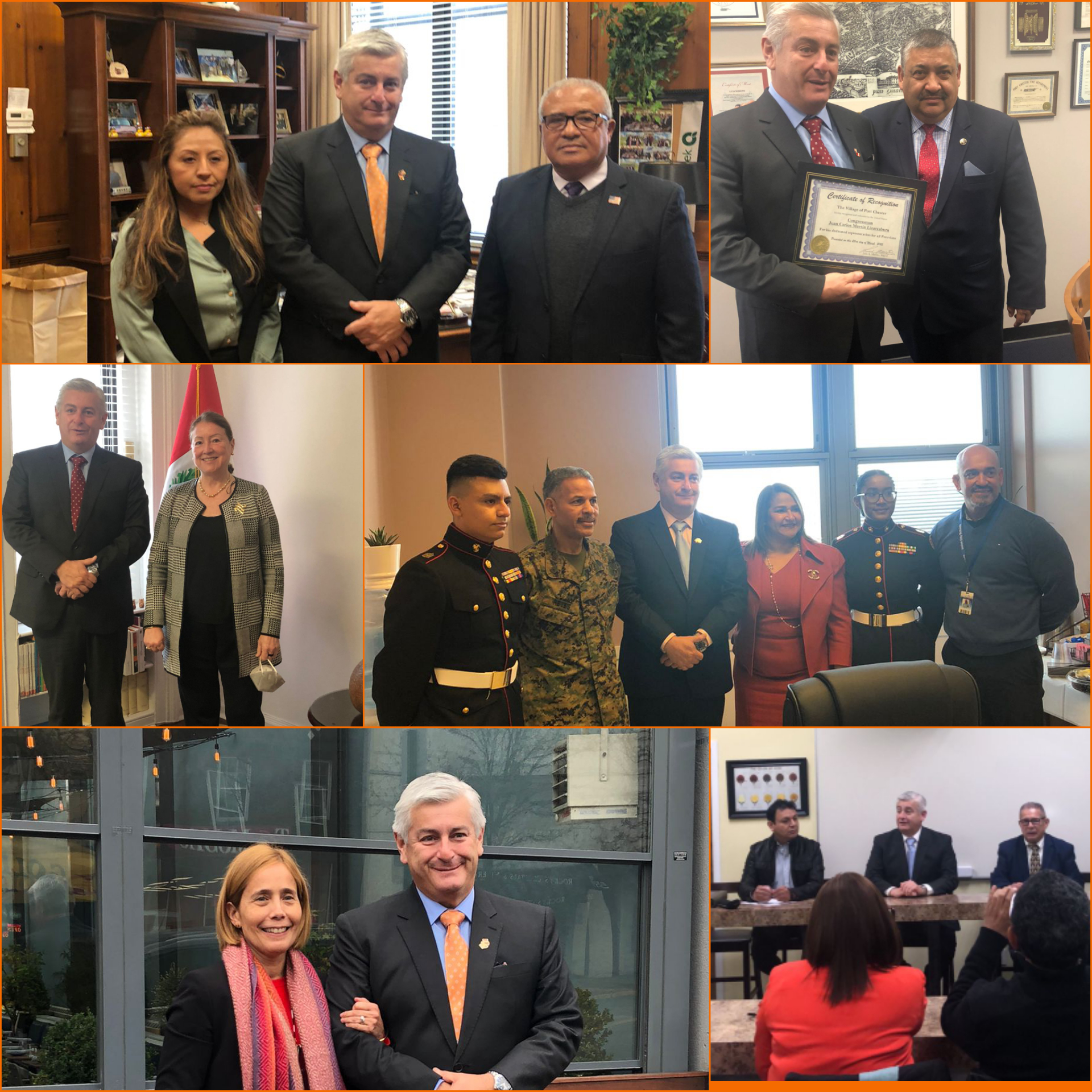 Noviembre de 2022Reunión con representantes de una asociación de ciudadanos peruanos, ex integrantes de un consejo de consulta, donde me hicieron llegar sus apreciaciones sobre la situación de los peruanos en esta ciudad.Reunión con peruanos de 3 hermandades. Conversamos sobre la posibilidad de realizar donaciones a Perú, de sillas de ruedas, ambulancias, alimentos no perecibles y temas de salud de la gente más necesitada. Max Rodríguez, representante de PROMPERÚ. Me pusieron en conocimiento de que su intención es la de promocionar al Perú, través de la asistencia especializada a empresas receptoras de inversión extranjera y operadores turísticos, mediante la promoción de bienes y servicios exportables. Reunión con la cónsul general de Perú Sra. Martha Lizárraga, para que me informe sobre el funcionamiento de este consulado. Se encuentra implementando una ampliación en las instalaciones con el fin de realizar una mejor atención a nuestros compatriotas. Reunión Cámara de Comercio PERÚ USA, se nos dio a conocer la labor que realiza esta entidad la cual agrupa alrededor de 150 miembros y tiene 32 años de creada. Representantes de la ciudadanía peruana en miami. Hablamos sobre el fortalecimiento de las asociaciones, los derechos fundamentales que deben de tener como pex. Algunos de los participantes a esta reunión: