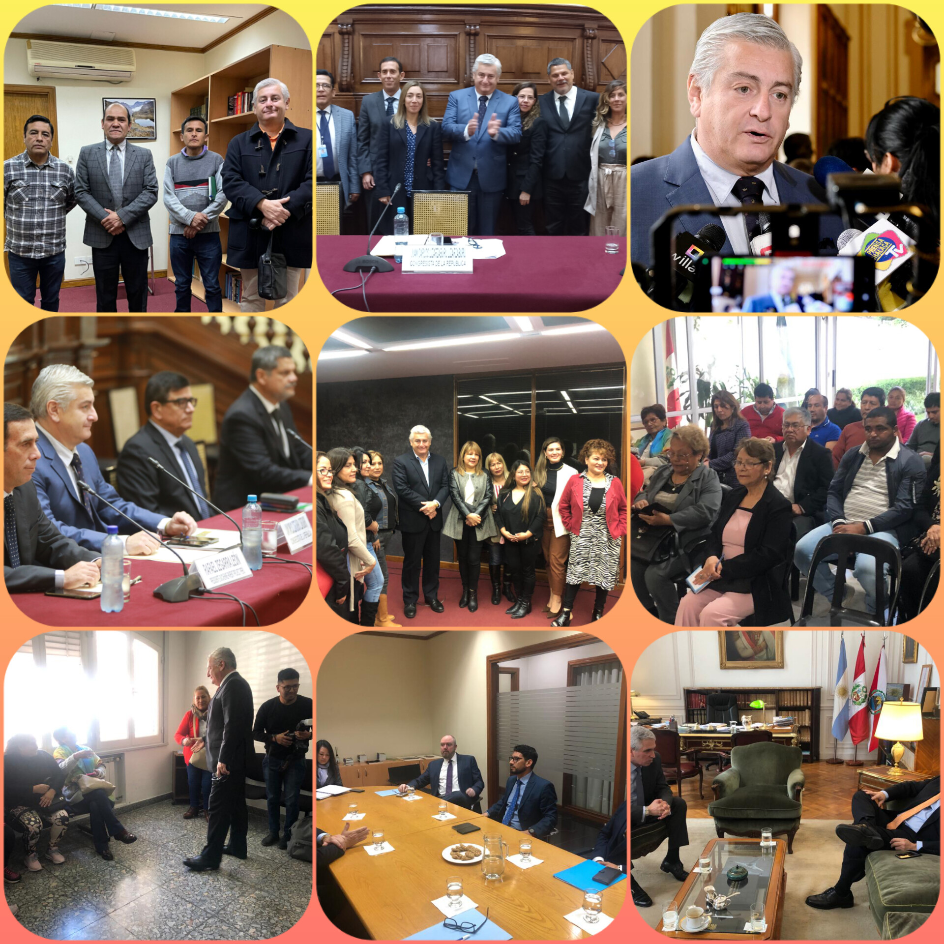 LUNES 24 DE MARZO DE 2025 MINISTERIO DE TRANSPORTES Y COMUNICACIONES Y MINISTERIO DE SALUD: En mi primer día de reuniones desarrolle una mesa de trabajo con estas dos entidades. La que se realizó en las instalaciones de mi despacho congresal. Se abordó la gravísima problemática que aqueja a miles de ciudadanos que rinden el examen médico para la revalidación de sus licencias de conducir (cuya duración es de entre tres a seis horas), en donde, (en muchas y reiteradas oportunidades) el sistema colapsa, se reinicia, entre otras dificultades; en perjuicio de los administrados. Ante ello, se buscó proponer alternativas para reducción del tiempo de las evaluaciones médicas y psicológicas a los postulantes que busquen obtener o revalidar sus licencias de conducir, considerando la necesidad de adaptarlas al Sistema Nacional de Conductores, con el propósito de beneficiar a los citados administrados, dado los actuales tiempos de espera. Finalmente, entre los acuerdos adoptados, los representantes del ministerio de Transportes y Comunicaciones, se comprometieron a proporcionar al representante del ministerio de Salud, la estadística y la base de datos correspondiente a los tiempos que invierten los referidos administrados, a fin de obtener o revalidar sus licencias de conducir, con la finalidad de reducir dichos tiempos. MARTES 25 DE MARZO DE 2025 MINISTERIO DE ECONOMIA Y FINANZAS: En mi segundo día de reuniones por Semana de Representación. Me reuní con el ministro de economía José Antonio Salardi. En dicha reunión tratamos temas de sumo interés e importancia para la comunidad de peruanos en el exterior. Entre otros temas, conversamos sobre los avances que viene realizando el ejecutivo para el perfeccionamiento de los tratados para evitar la doble tributación con España e Italia, los cuales significarán importantes beneficios para nuestros compatriotas en dichos países. Asimismo, se acordó unir esfuerzos y realizar una mesa de trabajo entre el Ministerio de Economía, el Ministerio de Vivienda y mi despacho, para viabilizar el proyecto de mi autoría, que extiende los beneficios del bono habitacional Mi Vivienda, a nuestros connacionales que residen en el exterior. MIÉRCOLES 26 DE MARZO DE 2025