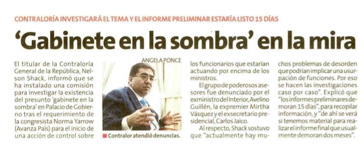| CONTRALORIA YA CHEQUEA AL GABINETE EN LA SOMBRA |
