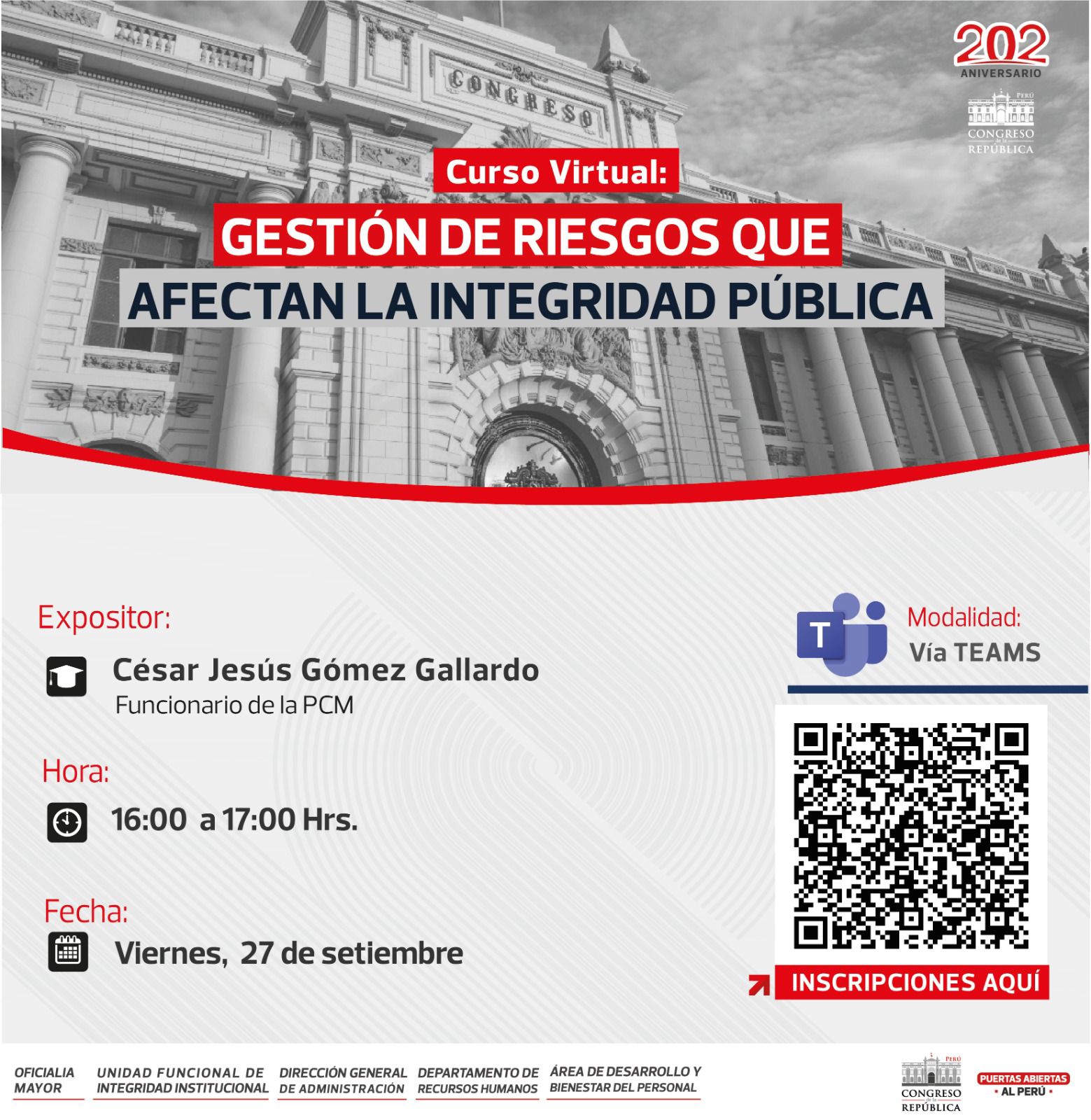 Expositor: César Jesús Gómez Gallardo, funcionario de la PCM
