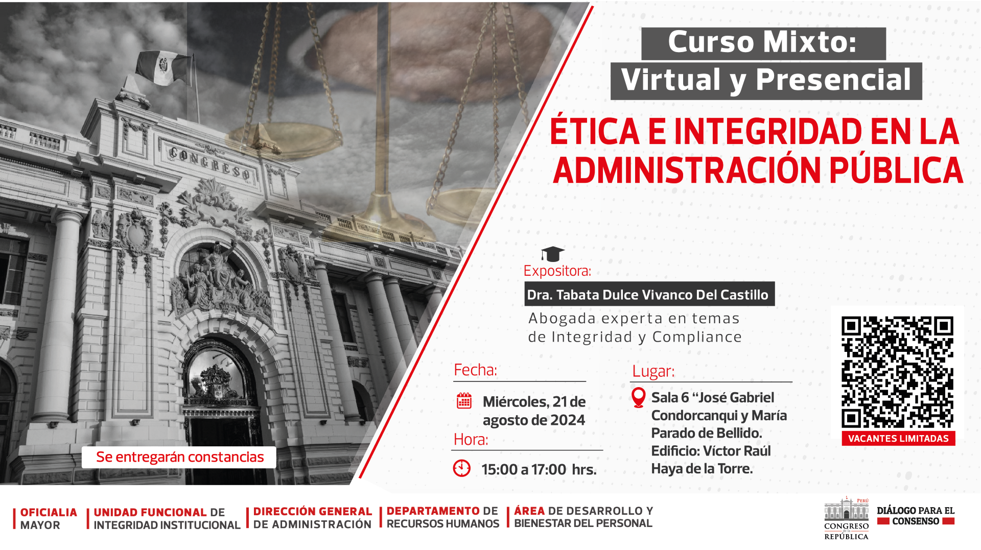 Expositora: Tabata Dulce Vivanco Del Castillo, Abogada experta en temas de integraidad y Compliance