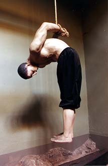 El castigo del agua: estando el procesado totalmente inmovilizado sobre una mesa de madera le colocaban una toca o un trapo en la boca deslizándolos, en cada caso, hasta la garganta. Luego el verdugo procedía a echar agua lentamente, produciendo al preso la sensación de ahogo.