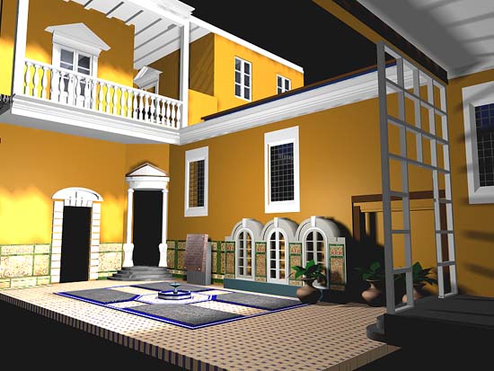 Este es el Patio Sevillano, llamado así por el decorado de los azulejos que eran típicos en las principales casas de la época. El predominio del color verde se debe a la utilización del mismo realizada por el Santo Oficio. En él destacan los nombres del primer inquisidor Serván de Cerezuela), y la fecha de creación del Tribunal limeño (1569); así como los de los últimos inquisidores (Anselmo Pérez de la Canal y José Mariano de Larrea) y el año en que dejó de funcionar el Tribunal (1820). Su actual diseño es Republicano.