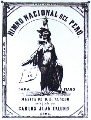 Mas adelante se encargo al maestro Claudio Rebagliati la restauración de la música del Himno que el gobierno aprobó el 8 de mayo de 1901. El maestro italiano conoció en vida a Alcedo y logró que el anciano compositor cantara la melodía que transcribió cuidadosamente. Rebagliati le agregó una introducción que el Himno original no tenia, pero Alcedo nunca la desaprobó. El Himno restaurado lucia “una armonización” llena de interés, acentuación adecuada, vigor y variedad de ritmos. VERSION VIGENTE Durante el gobierno del general Odría se nombró una comisión que debía revisar la música y letra al Himno Nacional. Teniendo en cuenta sus observaciones, pero también las de José María Arguedas, quien abogaba por conservar la tradición popular respecto a la letra del Himno, el gobierno emitió la Resolución Suprema N° 1391, del 2 de noviembre de 1950, en la que se aprobaba oficialmente la restauración musical de Rebagliati y se admitía, teniendo en cuenta el valor de la tradición popular, la estrofa “Largo tiempo el peruano oprimido...” como la primera, seguida de “ya el estruendo de brocas cadenas...”, según la edición de la Dirección de Educación Artística y Extensión Cultural del Ministerio de Educación del año 1951. |