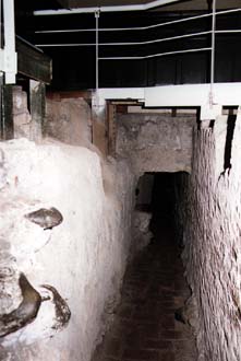 En la parte inferior de este mural se ve a los herejes, es decir, los procesados hallados culpables por comisión de faltas contra la fe. Asistían vestidos con sambenitos, trajes de carácter penitencial que consistían en unas túnicas, generalmente de color amarillento que les llegaban hasta las rodillas y llevaban figuras de acuerdo a los delitos cometidos; se les añadían las corozas o cucuruchos. En una de las tribunas se ubicaban los personajes más importantes de la época, incluyendo al virrey; en la otra, los reos. Cuando no habían recursos suficientes o las causas eran de menor importancia, se realizaban autillos en la iglesia de Santo Domingo o en el local del Tribunal. Cabe destacar en el dibujo la presencia del palacio de los virreyes (donde actualmente se ubica el palacio de gobierno), el municipio de Lima, el arco de ingreso a la ciudad y la pileta.