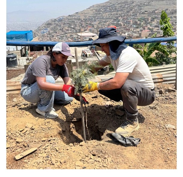 Durante la actividad se sembraron 50 árboles de molle costeño y mora, donados por el Servicio de Parques de Lima (SERPAR), contribuyendo a mejorar el microclima urbano y fortalecer el entorno ambiental de la zona.